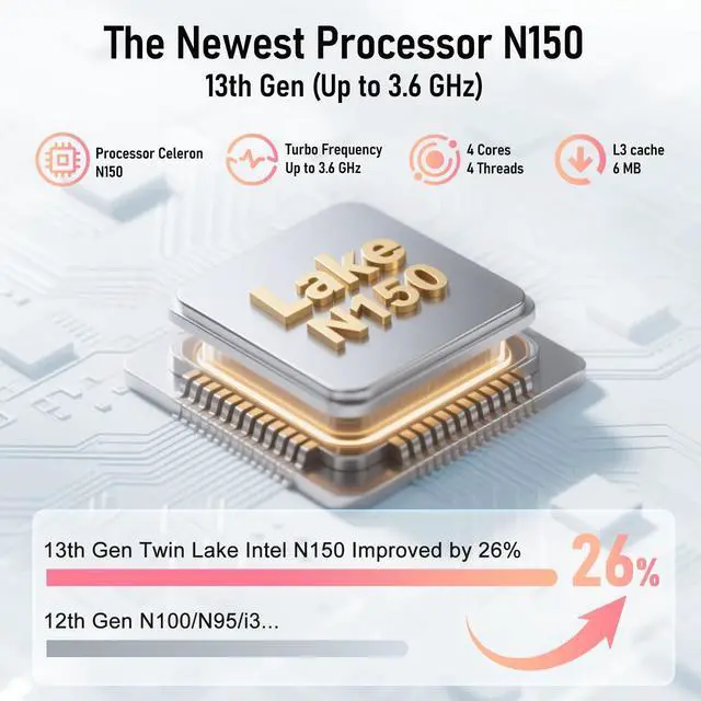 Work & Play: Powered by the latest processor N150 (4C/4T, 3.6GH z) and Integrated Graphics (1GHz), this laptop delivers responsive speed for multitasking, browsing, and everyday tasks without slowing you down. ^^ Ample