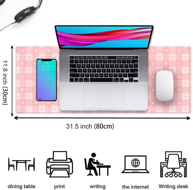 Multiple uses - desk pad, writing pad, game pad, platform protection pad, anti-scalding paAd, makeup pad. kawaii mousepad containsmouse pad*1Plastic packing bag*1I wishMy laptop mat can protect your desk, decorate your office, add fun and artistic atmosphere to your life. This desk keyboard pad is the perfect holiday gift for yourself, co-workers, loved ones or friends.