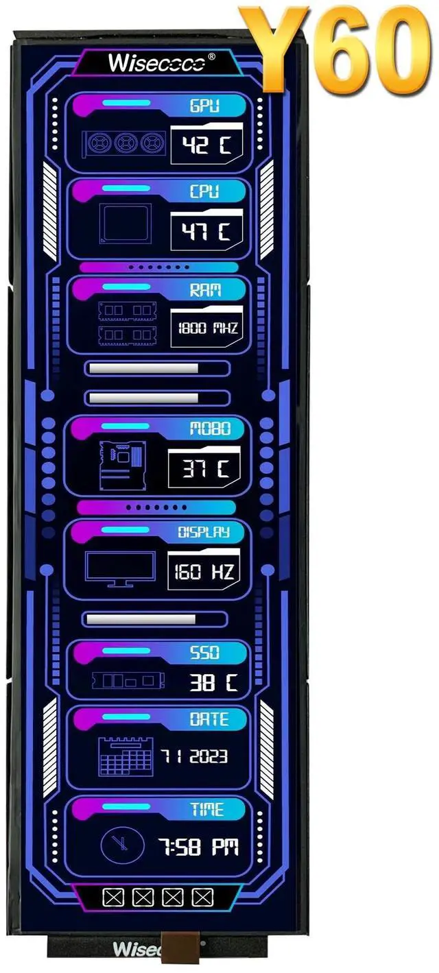 Y60: Features a screen bracket that fits the Y60 case panel perfectly, mount it easily with the screw driver attached in the package, no extra screws needed. ^^