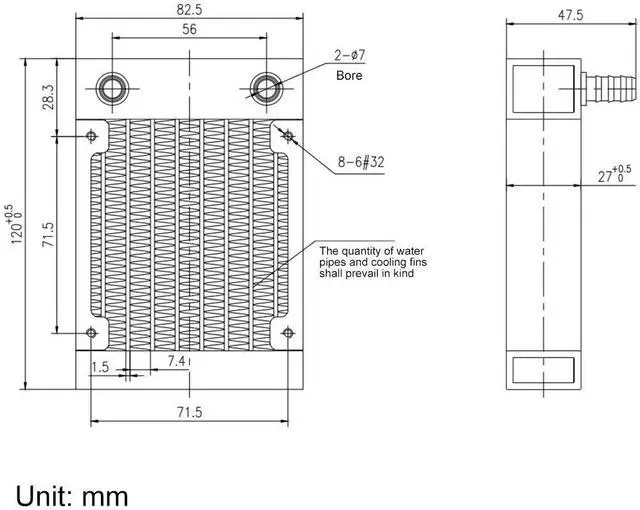 hole size: 69.5D 69.5W mmOptimized for high performance at low cost, No weak welds nor leakage. Suitable for computer CPU cooling, industrial frequency conversion driver, laser head cooling, air conditioning evaporator and industrial control cabinet cooling.