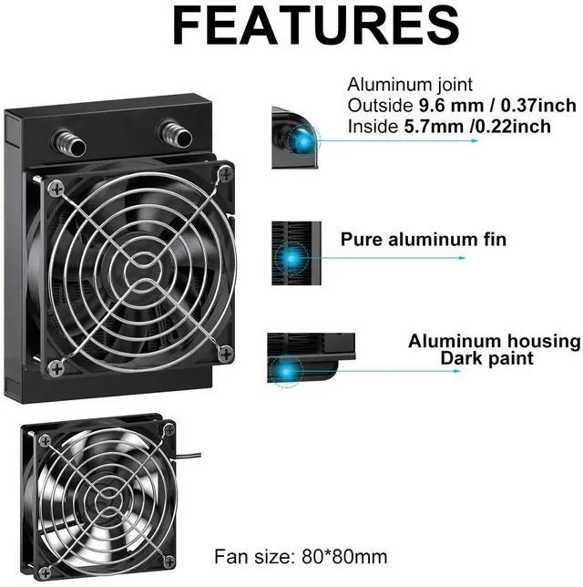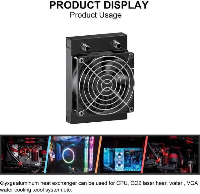 Package Included: 1 x Aluminum Heat Exchanger High speed fanNOTE: Screw holes below is channel pipe, so make sure not to use long screw, will top leaking.