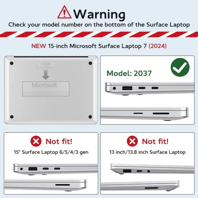 Precise Compatibility: Designed exclusively for the Microsoft Surface Laptop Copilot+ PC 15-inch Touchscreen (7th Edition) 2024, Model 2037. Please ensure you verify your laptop's model number before purchasing for a perfect fit ^^