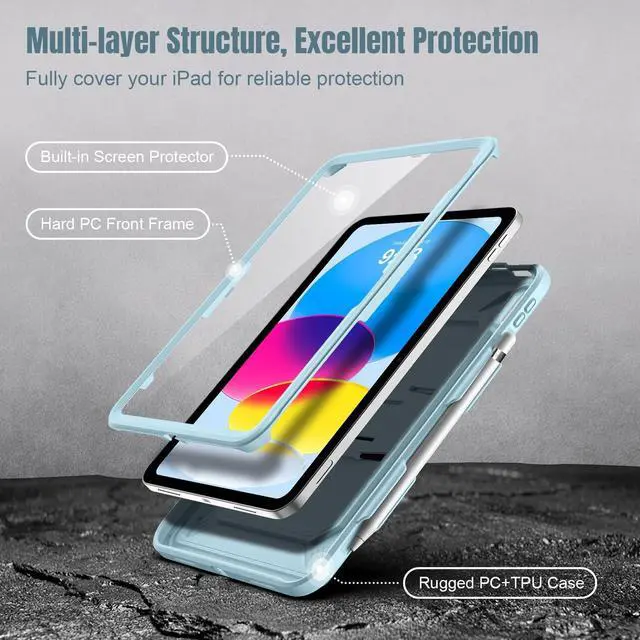 Precise Cutouts: This iPad 10th generation case is easy to access all buttons, Touch ID, speakers, cameras, all the ports are where they should be