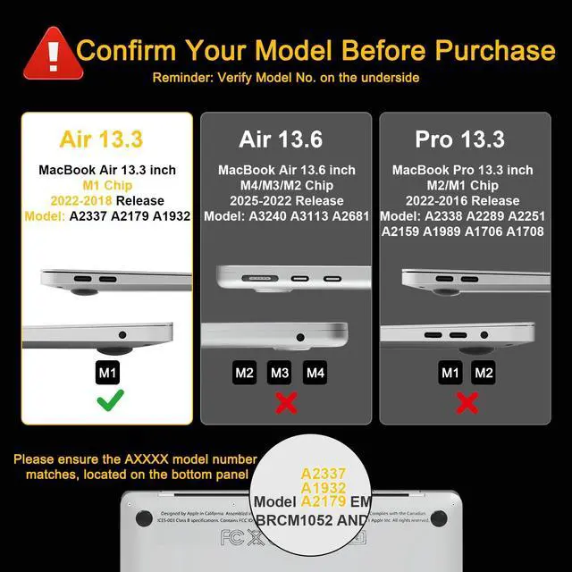 Model Compatibility: Only compatible with MacBook Air 13 inch 2022 2021 2020 2019 2018 Release with Retina Display and