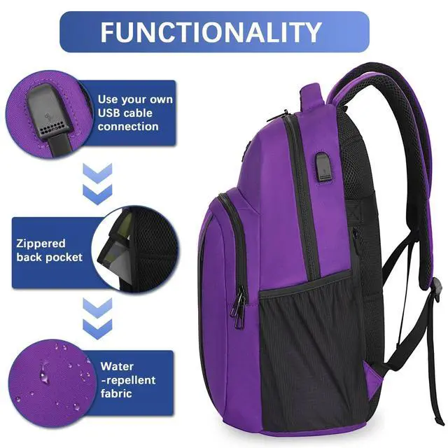 Pockets: Laptop travel backpack with a spacious main compartment, easily accommodates a laptop of 15.6 inches or less, while providing plenty of storage space for your files, tablets, books and other electronic devices. The front compartment has many pockets, pen pockets and keychains to keep your projects organized and easier to find, allowing you to keep various gadgets in order, such as power cords, headphones, portable hard drives, etc. ^^ USB