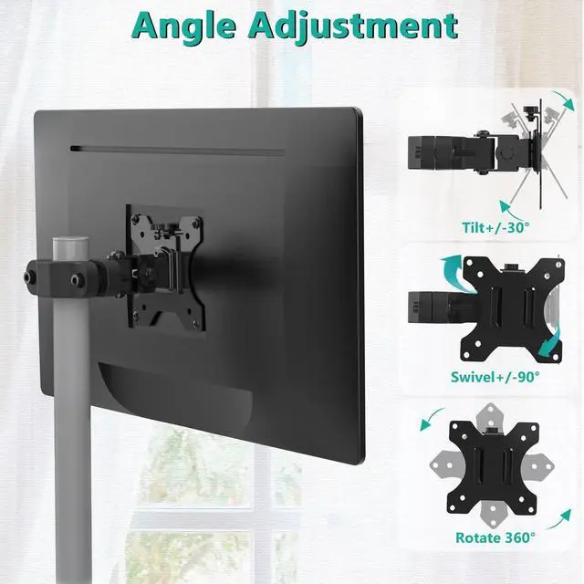 Design: Suit with most desk monitor mount and stand with 1.1 to 2.4 inch diameter center pole. Fit one monitor up to 32, 17.6 lbs and support with Mounting Holes size 75x75mm and 100x100mm ^^