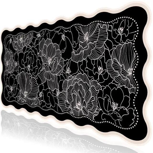 Ultra-smooth Surface: Black Floral one piece mouse pads for desktop with comfortable Lycra surface and breathable material. It's flexible enough to be rolled up for easy transport. You can flexibly and precisely control the mouse movement speed during your working or gaming. Its compatible with all mouse types, including mechanical, wireless, and optical mice. Let your mouse slide smoothly and precisely along the large mouse pad, and also protect your desktop, laptop, keyboard, mouse ^^