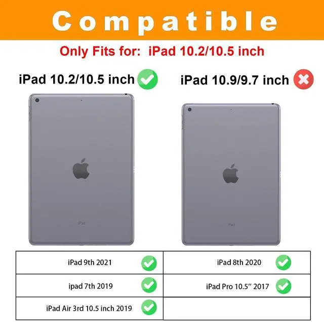 • COMPATIBLE MODELS: This case is only compatible with the iPad 10.2 inch case - iPad 9th Generation 2021 (A2602/A2603/A2604/A2605), iPad 8th Generation 2020 (A2270/A2428/A2429/A2430), iPad 7th Generation 2019 (A2197/A2200/A2198)