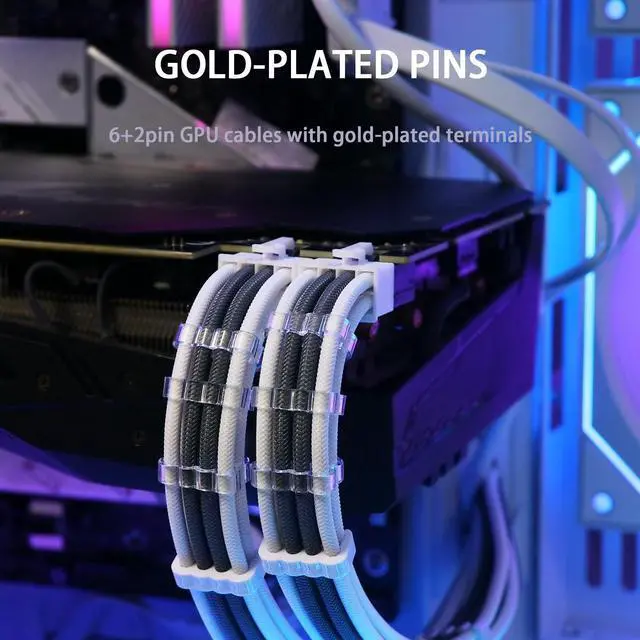 Upgrade your PC's aesthetics and functionality with the Sirlyr PSU Cable Extension Kit. With a unique pre-bent design and pre-installed cable combs, we make cable management easy and visually appealing. Our 8-pin PCIE cables come gold-plated, offering stable power supply and protecting your hardware. The unique colorful design fits well with various build, giving it a cleaner, more professional look. Trust Sirlyr for your PC cable extensions and enjoy quality assurance with our free one-year replacement service for any quality issues. Give your PC a visual and functional boost with the Sirlyr PSU Cable Extension Kit today!