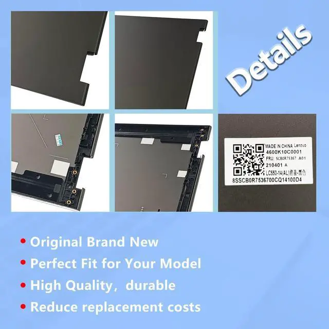 0001 ^^ SpecificationPackage Include: 1 x LCD Back Cover ^^ WarrantyAll new compatible replacement products undergo rigorous testing before shipment to ensure a worry-free shopping experience for our customers ^^ Customer SupportIf you encounter any issues or have questions about the product, D-KXCPELE's customer support team is available to assist you. ^^ NotePlease ensure compatibility with your laptop before making a purchase. Install the product while the laptop is powered off, or seek assistance from a professional or repair shop for further guidance. ^^ About UsWith years of experience in manufacturing laptop component replacements, D-KXCPELE is well-equipped to handle large volume orders. For inquiries, please feel free to contact us.