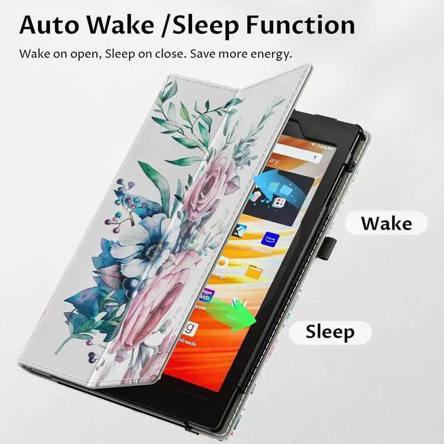 Angles]: Kindle Fire 10 case with useful dual-angle stand design, choose the typing angle or viewing angle as you want, provide comfortable viewing angles for reading, viewing, typing, or making video calls ^^ [Auto