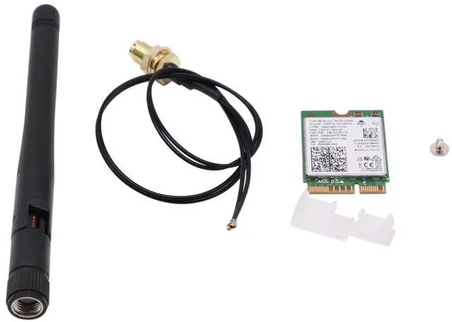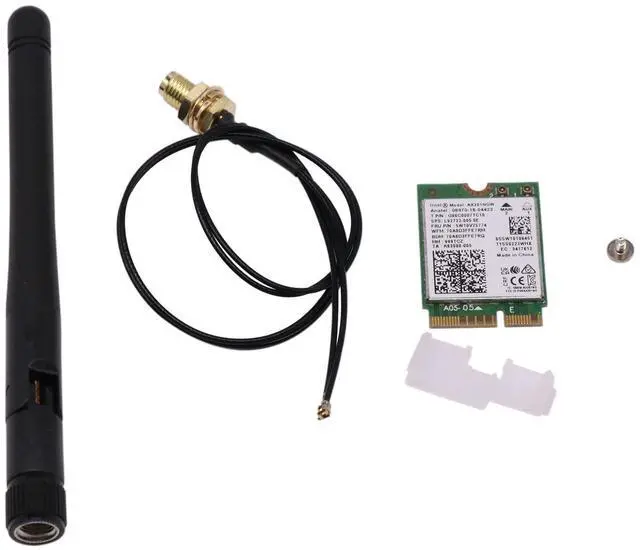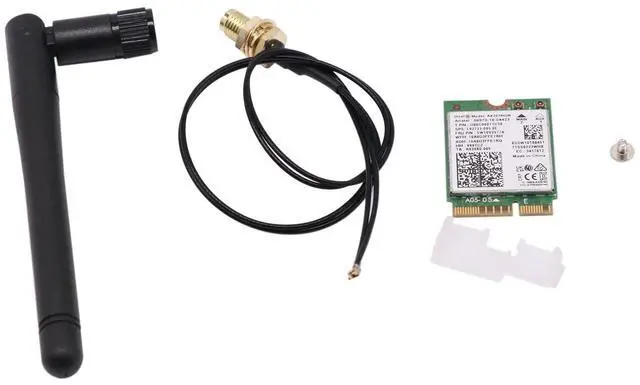 & 2400MbpsPackage details: (see pics) **1PCS Outside antenna**1PCS antenna cable- 25cm**1PCS Front antenna screw**1PCS WIFI Card- AX201NGW.