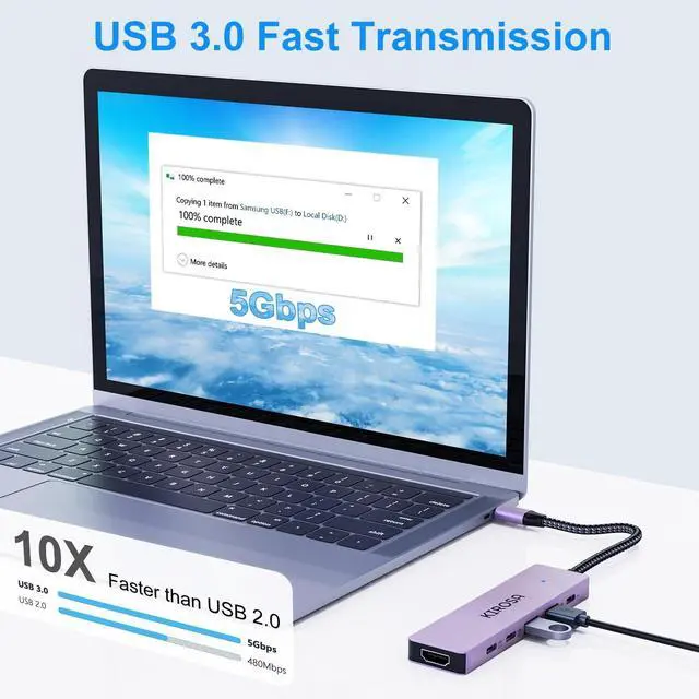USB-C Hub: The Macbook USBC Hub mirrors or extends the screen via the HDMI port on the USB C hub to stream 4K 3840 x 2160 @30Hz video directly to a monitor, projector, or HDTV, offering a cinema-like immersive experience, great for education, recreation, work, fitness and more. ^^ 5Gbps USB 3.0