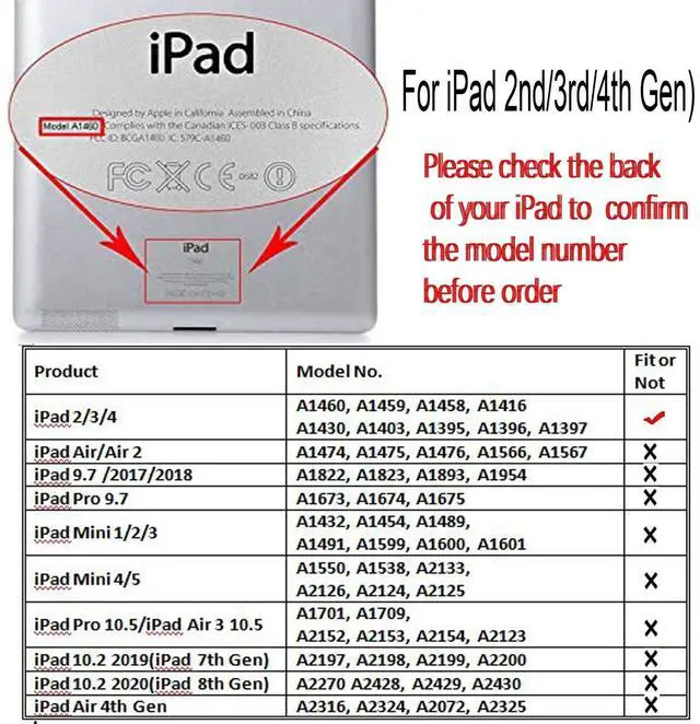 Specially designed for 9.7 inch iPad 2 (2011 Released), iPad 3 (2012 Released) and iPad4 (2012 Released) -including the following
