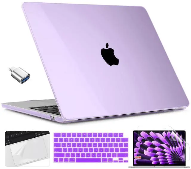 TWOLSKOO Compatible with M4 MacBook Air 15 inch Case 2025-2023 Release M4 A3241 M3 A3114 M2 A2941, Plastic Hard Shell&Screen Protector&Keyboard Cover&Trackpad Film&Type C Adapter, Crystal Purple
