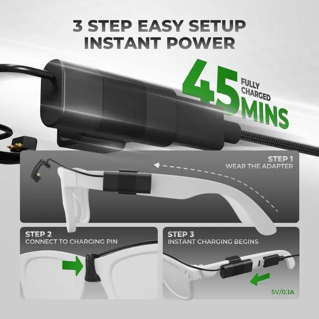 ^^ Fast Charging: Enjoy quick charging speeds, allowing you to charge your RayBan smart glasses efficiently and save valuable time. Keep your glasses powered up and ready to use.