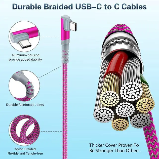 90Right Angle USB CThe USB C to USB C cable with an 90" L " design. It's more convenient and comfortable for playing games, watching videos when you charging. It completely solves the troubles of ordinary wires that are easy to block hand, unintentionally interrupted and the bending of the connector while using while charging ^^ 60W Fast Charging & Sync SpeedThe type c to type c fast charging cable supports PD 3.0 & QC 3.0 fast charging, up to 20V/ 3.1A (max) with USB C Power Delivery adapters such as 18W/30W/45W/60W. Fast charging gives you a quick and convenient way to recharge your devices up to 89 percent in 45 minutes, and data transfer speeds up to 480Mbps (1200 songs synced per minute) ^^ Super 1000+ Bends Reinforced 90 degree USB C cable with special joint, proven in a laboratory environment to withstand 10000+bends.