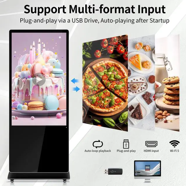 • Ultra-Bright 4K Commercial Display Engineered with 500nit brightness & 1080x1920 resolution, this floor standing digital signage delivers crystal-clear visuals even in high ambient light environments. Ideal for retail stores, corporate lobbies, and hospitality venues, our vertical screen ensures 178 wide viewing angles to maximize advertising impact
