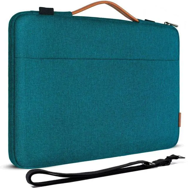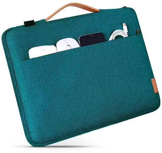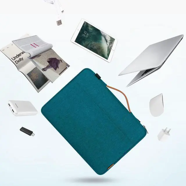 dimensions: 15.7" * 11.4" * 0.78" inch. ^^ The outer material consists of high quality waterproof fabric to protect your laptop from rain, dust and scratches. The interior consists of soft fleece to protect your laptop from bumps, strokes and scratches. ^^ Side pocket of the bag is ideal for storing small items such as power adapters, cables, pens and notebooks, with additional comfort. ^^ A premium zipper has been thoroughly tested for maximum resistance and safety to keep the valuables safe.
