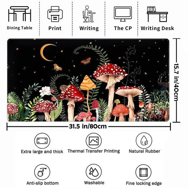 Stable Operation: The bottom of the mouse pad is stitched together with the non-slip rubber base. You won't get distracted by the sliding of mouse pad when you're working or playing gamesMaterials: Breathable fabric, comfortable Lycra Surface and Non-Slip Rubber BaseX-Large Size 31.5 x 15.7 Inch / 80X40 CMThickness 0.12 Inch / 0.3