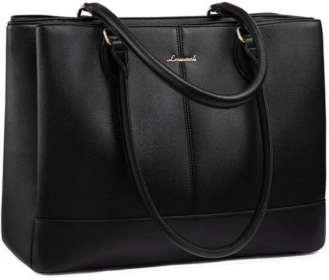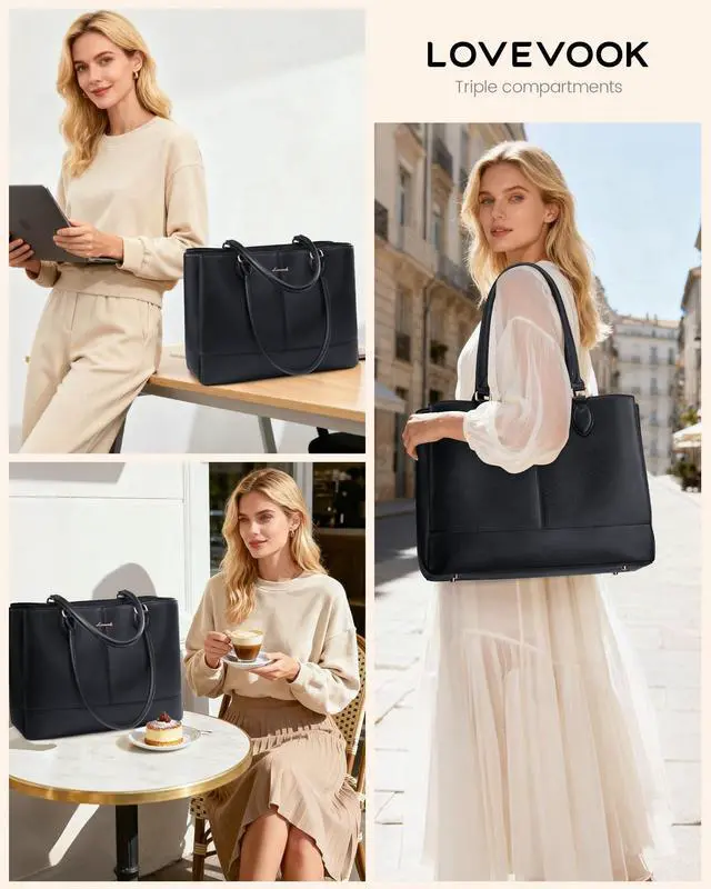 3-Zone Organized & Quick Access SystemThis LOVEVOOK tote features a smart 3-compartment layout. The central zipper secures laptops up to 17.3 inches, while two magnetic-flap sections offer instant access to essentials. This design ensures superior organization, making it the ultimate work tote bag for women ^^ All-Weather Protection & Built to LastCrafted from premium water-resistant PU leather with reinforced stitching, this chic and durable tote features a padded laptop compartment and protective metal feet to prevent scratches and moisture, while its 17.5" L 6.5" W 12.5" H size keeps your belongings safe, organized, and stylish for work or travel ^^ Multiple Pockets for Neat StorageThis organized tote bag includes multiple inner pockets to securely hold smaller items like your phone, charger, pens, and cosmetics.
