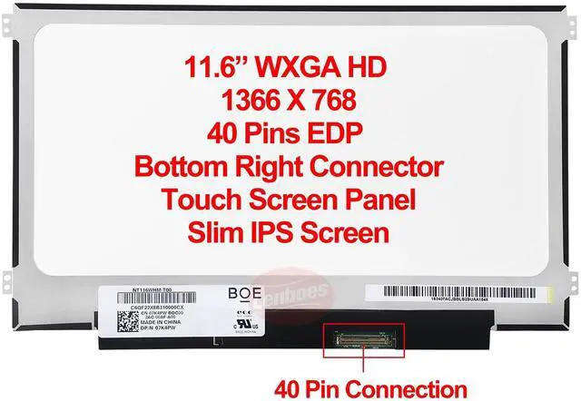 Connector: 40 Pins Bottom Right, NOT Working for 3100 3110 3120 2in1 Version Chromebook ^^ Many Different Part Numbers are Compatible. Please Double Check the Part Number of Your Laptop Original LCD and Make Sure Our Part is What You Need. If You Do Not Know What Exact 11.6" LCD U Need, Please Feel Free to Contact Us ^^ LCD Part is a very Fragile Part, Please Install it under Professional Guide, if Not, Please Do Not Try. Better to Ask Some Laptop Repairing Tech to Do It for You if You Have No Idea of How to Repair ^^ 180 Days Warranty, Tested One by One, 100% Working before Packing and Shipping