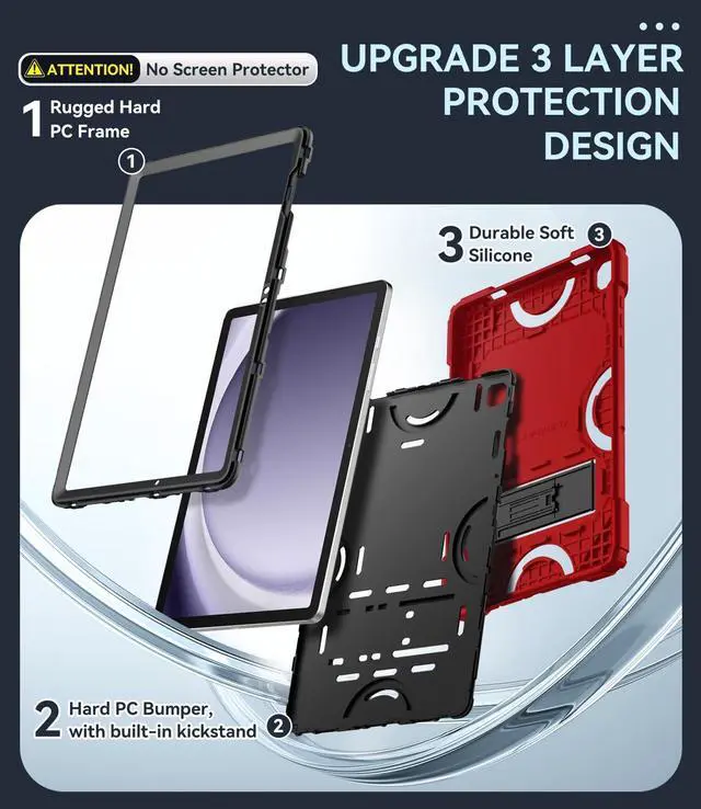 Drop Protection: Case for 11 inch Samsung Galaxy Tab A11 Plus case/ Galaxy Tab A9 Plus case kids features upgraded 3-IN-1 shock-absorbing protective structure, rugged hard PC and durable silicone outer layer to fully protect your tablet from accidental drops, bumps, shocks, and scratches. Screen Protector NOT included ^^