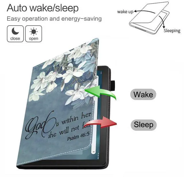 Made of durable Luxury PU leather to prevent scratches. It is durable, slim, comfortable, lightweight. Viewing angle frees your hands from other activities and avoids any joint pain, and enables you to type or watch videos comfortably. Smart Auto wake up /sleep funcation for energy saving, extend stand-by time. Designed with 4 delicate card slots inside for you to carry your necessary cards. There is a flexible pencil holder at the edge of the shell for keeping your stylus in place (Stylus is not included). Precise cutouts align well with your tablet's features (camera, speaker, ports and buttons) and allow smooth operation without removing the case.