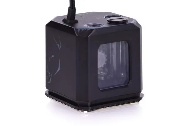 The Eisbaer Aurora gives you full control. Pump and coolerThe basis of the pump is the Alphacool DC-LT Ceramic Ultra Low Noise pump which is also available separately. The pump is powerful enough to operate a circuit consisting of a radiator, a CPU block, and a graphics card water cooler. It is incredibly quiet, almost inaudible. The cold plate is made of nickel-plated copper and offers excellent heat transfer. Due to the fine fin structure of the cooler bottom and the optimized water flow, the cooling performance is comparable to the best DIY water coolers on the market.