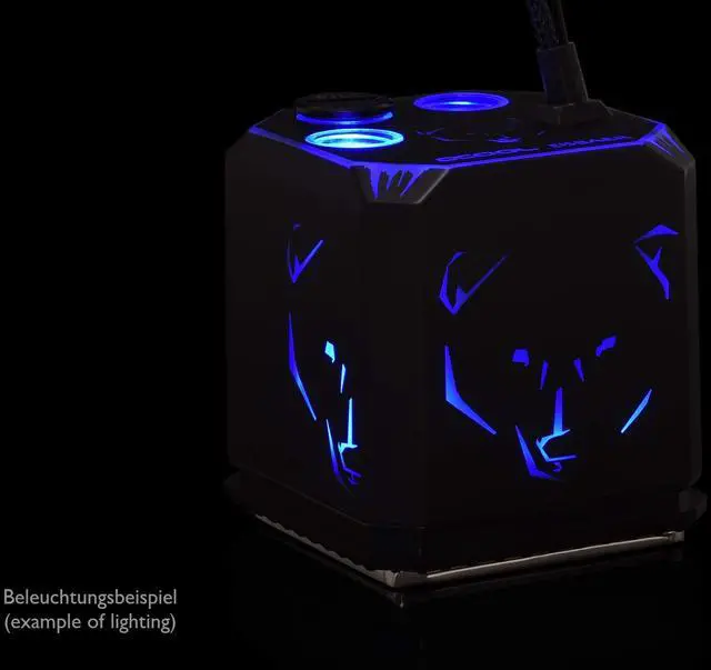 No compromises have been made in terms of performance in favour of other features. Design and lightingThe Eisbaer Aurora Solo is equipped with addressable digital RGB LEDs. The aRGB LEDs can be connected to any 3-pin 5V connector and controlled easily. The housing is decorated with a polar bear, through which the LEDs shine.