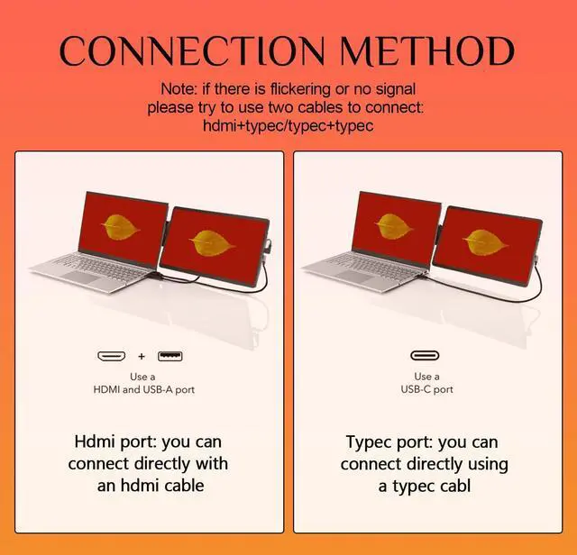 Connection: The Anvazise Portable Display Comes With All The Cables You Need To Work, Plug And Play. If Your Computer Has A Hdmi Or Typec Port, You Can Connect It Directly With A Single Cable, Or If It Flickers And Has No Signal, You Can Connect It With Two Cables At The Same Time: Hdmi+Typec