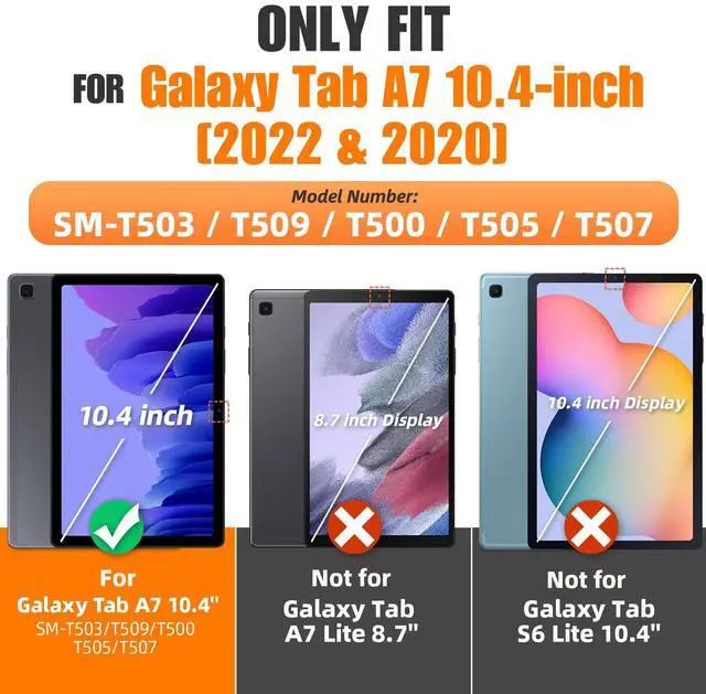 Compatibility: Designed case for Samsung Galaxy Tab A7 10.4 inch (Model: SM-T503/509) 2022 & (SM-T500/T505/T507) 2020 Released; Please confirm the product before purchase ^^ Soft Hand Strap & Portable Shoulder Strap & Rotating Stand: Provide the securest protection and more convenience when you play or work with case for Galaxy Tab A7 10.4; Hang it anywhere for your better entertainment, make your hands-free; 360 Degree rotating Kickstand provides multi-angle viewing, with soft handle strap, easier to use your tablet in your outdoor travelling, working, gaming ^^