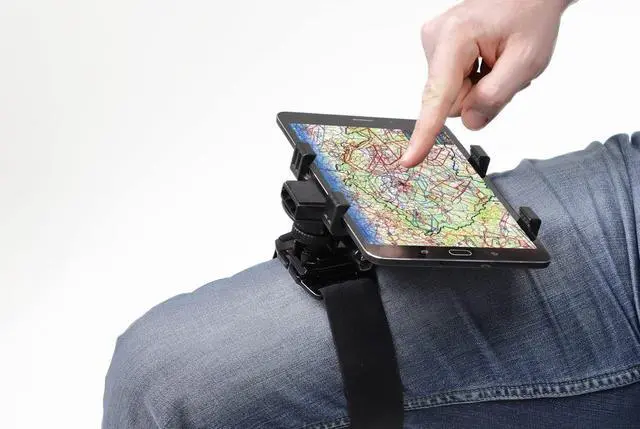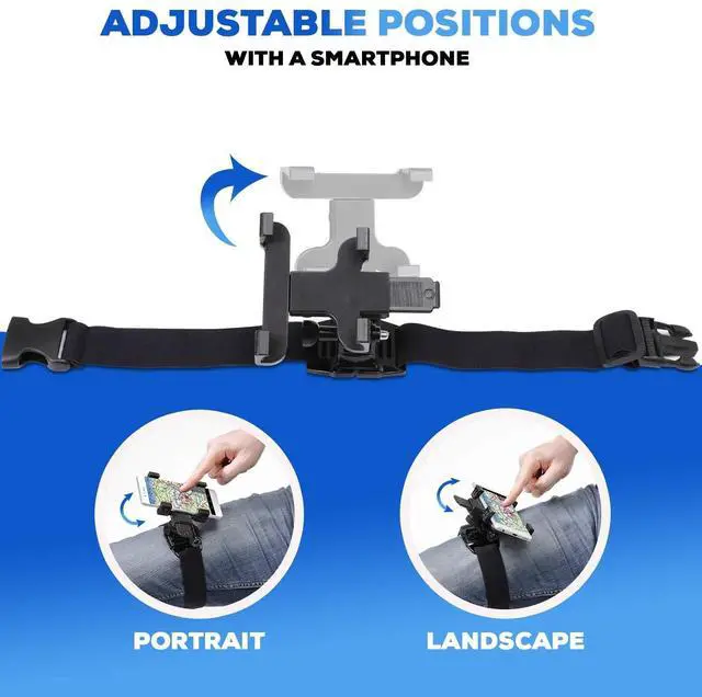 One size fits all. With maximum clip depth of 5.9 '' (15 cm) DreamPilot easily fits all designs iOS and Android smartphones and most of the mini tablets (including iPad Mini without case). Holding your device firmly in place. ^^ Fully adjustable position and angle. Thanks to the rotating mechanism, you can use your device both in portrait or landscape mode. The angle between the device and your knee is also adjustable for optimal comfort. ^^ Stable fastening above your knee. Adjust the length of the elastic strap according to your needs.