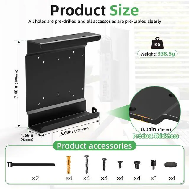 This mini PC stand is designed specifically for OptiPlex micro-chassis, ensuring a secure and snug fit for your devices. This bracket can be easily mounted to a wall, VESA mount, or even placed under a desk, giving you flexibility in your workspace setup. The mini PC bracket comes with all the necessary hardware for quick and easy installation, saving you time and effort.