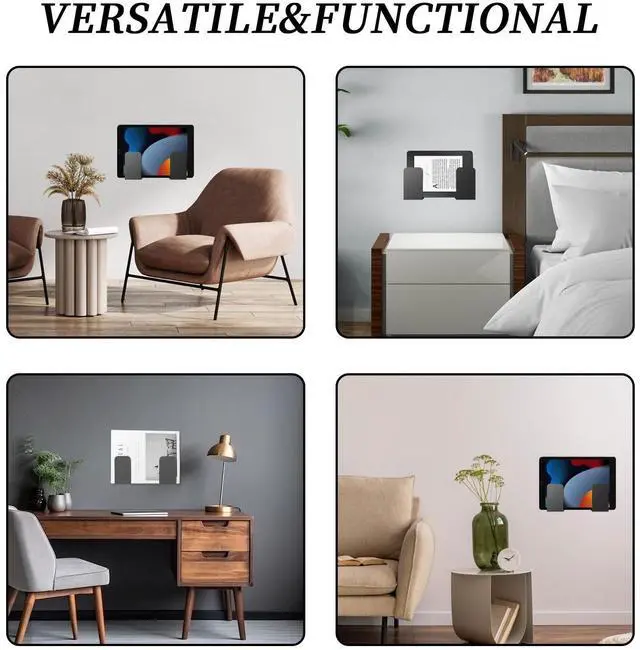 Note: You just need to check the size and weight of your device before buying. ^^ High Quality Metal MaterialThe laptop wall mount is made of 0.07 inch/ 1.8 mm high quality metal and surface painting process. It contains 8 pcs EVA pads to protect your electronics. ^^ Easy to InstallThe Laptop Storage includes screws and rubber plug, Youll be able to install this wall mount quickly and easily. Use this option only, DO NOT PLACE ON PAINTED, DAMP OR PLASTERED WALLS, PAINT OR PLASTER MAY COME OFF! ^^ Multiple ScenariosHide your wires and boxes to enjoy a clean, organized TV setup. You can use the cable box mount to keep your small and wide Devices on the wall, such as living room/bedroom/study room/office. You can also display the keyboard in your store and use it to store your cutting board on the wall.
