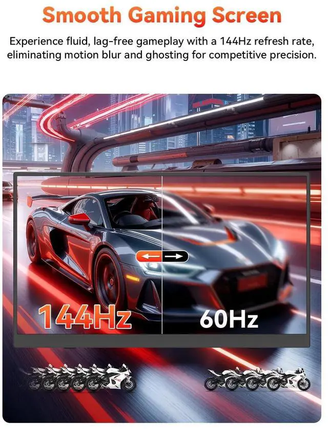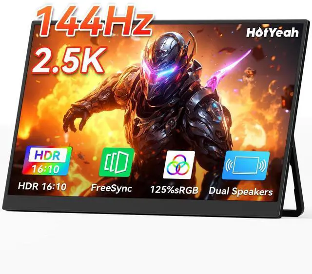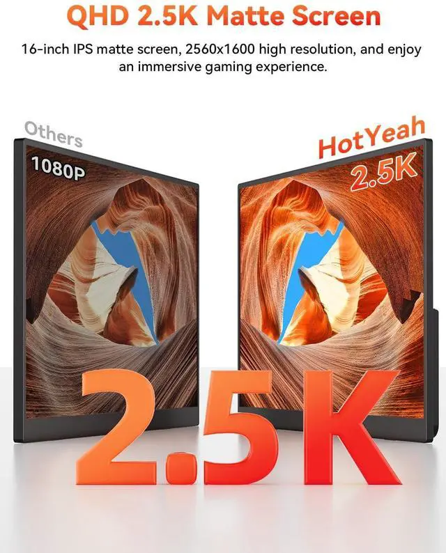 Immersive 16" 2.5K QHD Portable MonitorExperience a larger workspace or gaming view with a premium A+ matte LCD IPS panel (178 viewing angle). Enjoy crystal-clear visuals, smooth portable monitor 144Hz gameplay, and vibrant colors thanks to 125% sRGB color gamnut, 10-bit 1.06B colors, 6800K color temp, 400 nits brightness, and 1200:1 contrast. Perfect for multitasking, streaming, and immersive gaming on this high-performance portable monitor. ^^ Boost Productivity or GamingExtend your desktop, mirror your screen, or use it as a dedicated second portable monitor for laptop. Easily switch between landscape and portrait modes.