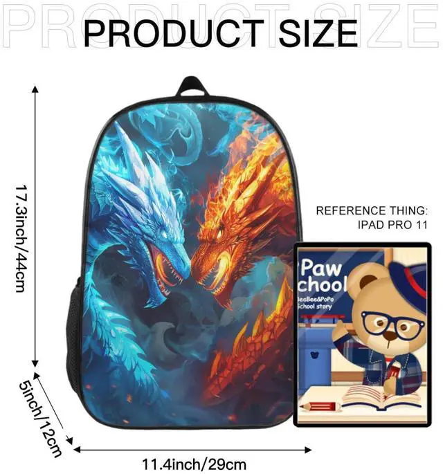 ^^ Fashionable design: The backpack design size is 17.3 x 11.4 x 5 inches (L x W x H), weight is 0.66 lb, which is suitable for various groups of people. This durable backpack is designed to be portable and with two adjustable shoulder strap, the elastic mesh side pocket fits a water bottle and a umbrella nicely.