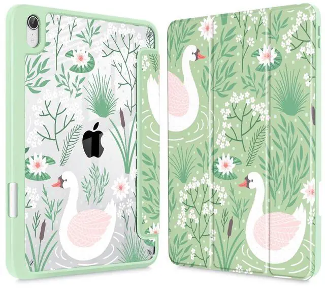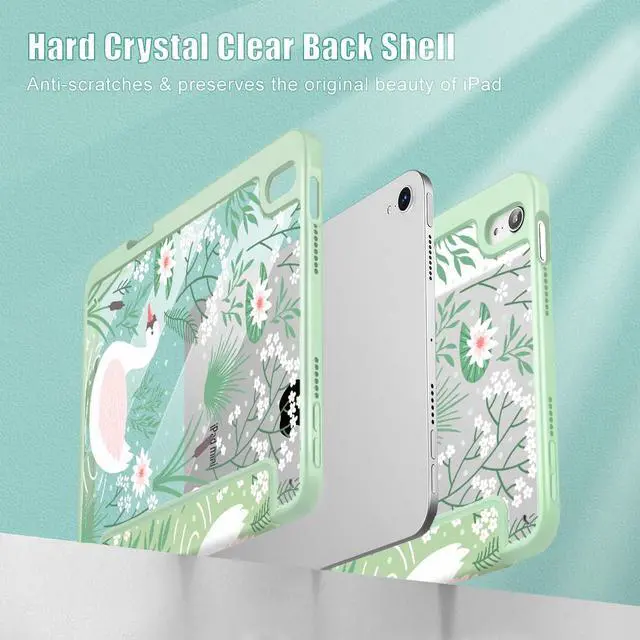 Tuiklol Clear Case for iPad mini 7 (A17 Pro 7th Generation) 2024 / iPad mini 6 (6th Generation) 2021 8.3 Inch,Built-in Pencil Holder Slim Transparent Back Shell Cover Auto Wake/Sleep, Goose Green