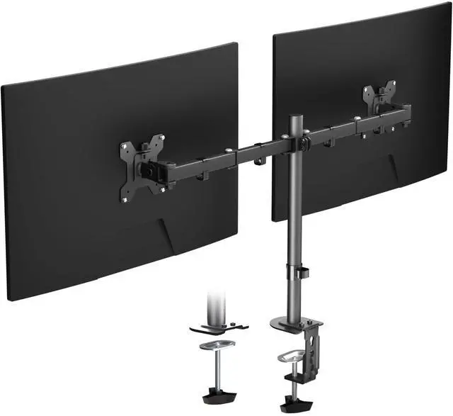 Dual Monitor Mount: This dual monitor arm fit most for 13-32 inch screens, each monitor arm weight up to 22lbs, fit VESA 75x75mm or 100x100mm backside mounting holes. Cable management clips can make your cable become tidy.