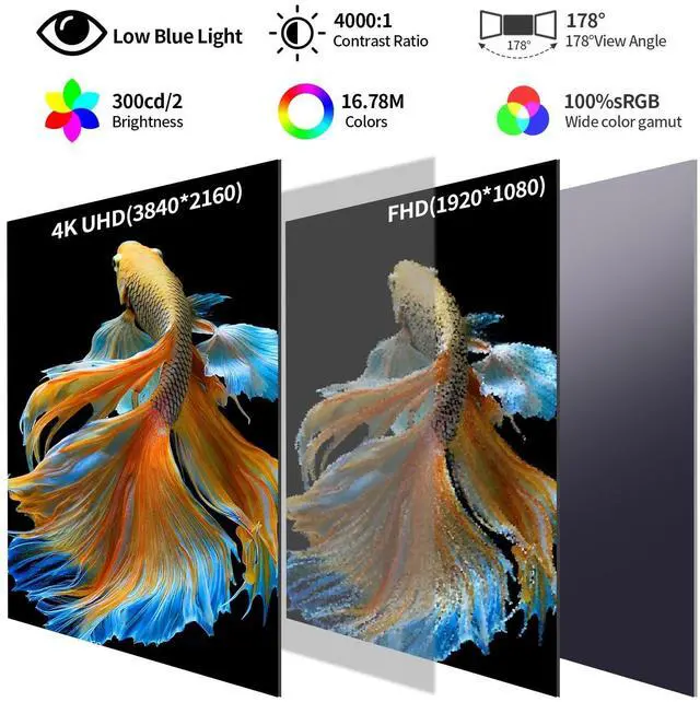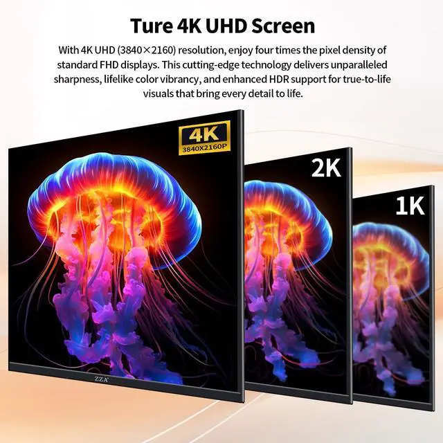 QUALITY: The ZZA 4K monitor boasts a 32-inch display with four times the pixel density of Full HD (8 million pixels), providing an enhanced visual experience. With 100% DCI-P3 color coverage, it offers a rich and vibrant color spectrum. The monitor displays up to 1.07 billion colors, with a brightness of 300 nits, a 4000:1 contrast ratio, and a pixel pitch of 163 PPI. This ensures sharp and detailed images ^^ Pro-Grade Color Performance, The 32 inch ultrawide monitor with 100% sRGB wider color gamut and 16.7M colors deliver studio-level color accuracyperfect for graphic-intensive tasks like photo editing and 3D rendering. The widescreen computer monitor will bring you immersive whether you're streaming movies, gaming, or editing videos ^^ Smooth 60Hz Refresh Rate with