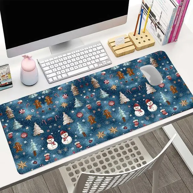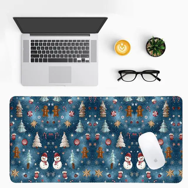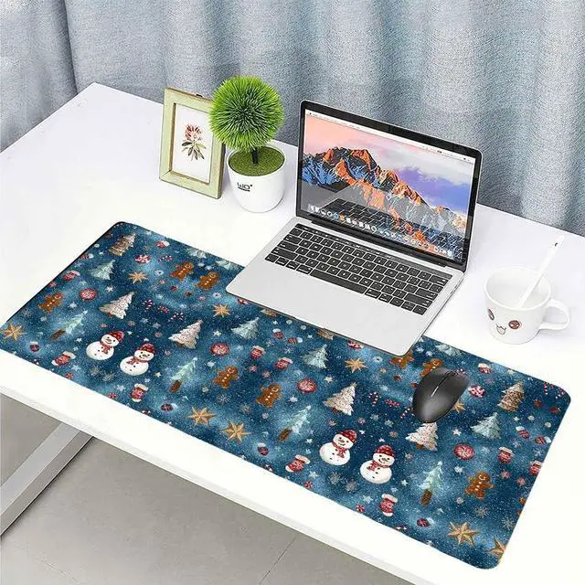 Christmas Snowman & Xmas Tree Desk Mat - Festive Holiday Office Desk Pad with Non-SlipChristmas Decorations GiftPersonalizedChristmasDesk Pad with Snowman DesignHome Office Decor31.5x15.7 Inch