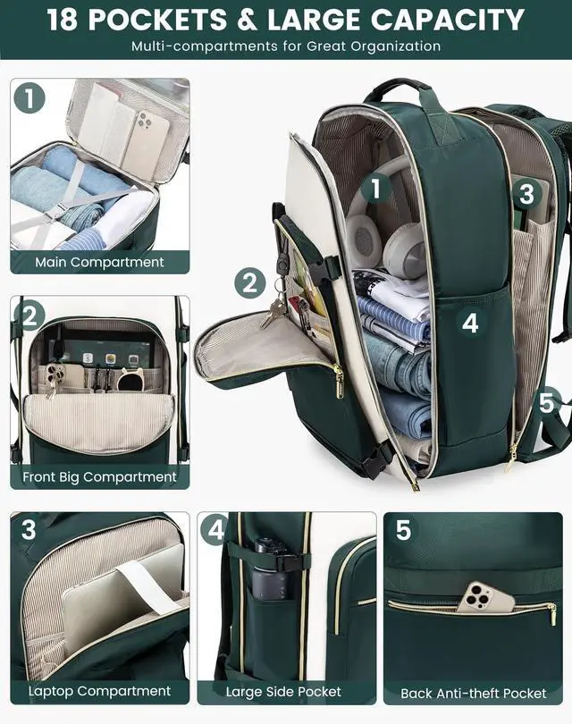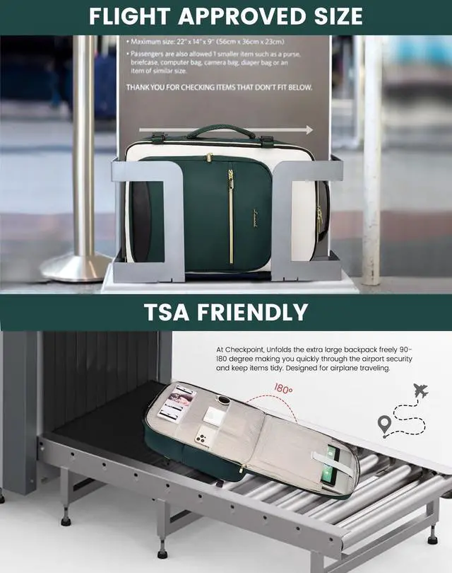 Ideal for college, work, and daily use. A reliable choice aligning with your lifestyle. ^^ Convenient 180-Degree OpeningWith a 180-degree expandable opening, this travel backpack simplifies security checks. Easily retrieve and stow items like a suitcase, making air travel hassle-free. ^^ Versatile for Various ScenariosWhether solo, with family, or on business, this travel bag backpack suits weekend getaways, business trips, and day excursions. Perfect for planes, cars, and trains.