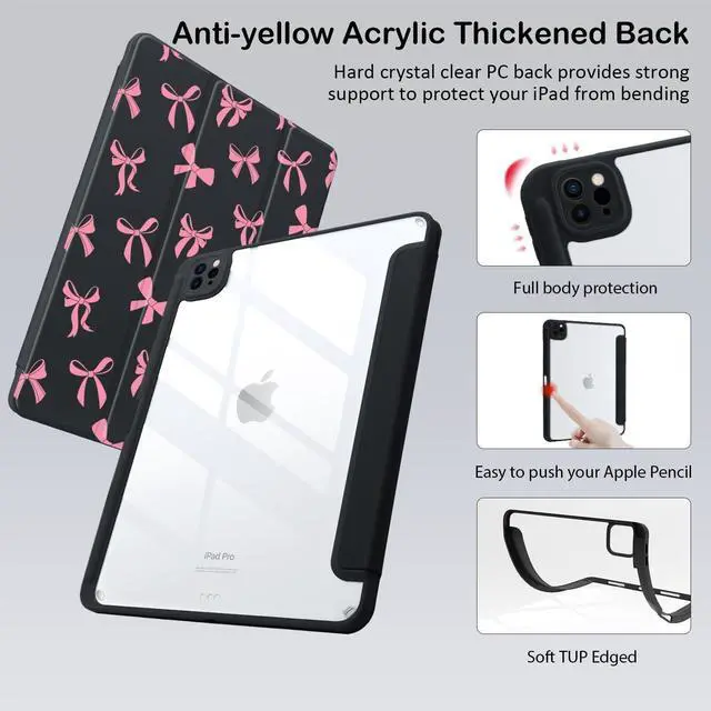 Please Note: It doesn't compatible with any other tablet models ^^ Well made with PU exterior, microfiber lining and soft silicone frame and clear acrylic back cover, offers full body protection from drops and scratches ^^ Built-in Apple Pencil holder, supports wireless charging, grab your Apple Pencil effortlessly whenever you want ^^ Cover has flip capability to transform the case into a viewing stand and typing stand. Available in a variety of bright colors and unique pattern ^^ Built-in magnetic strip provides auto sleep / wake function. Precise cutout and design allow easy access to all ports, sensors, speakers, cameras