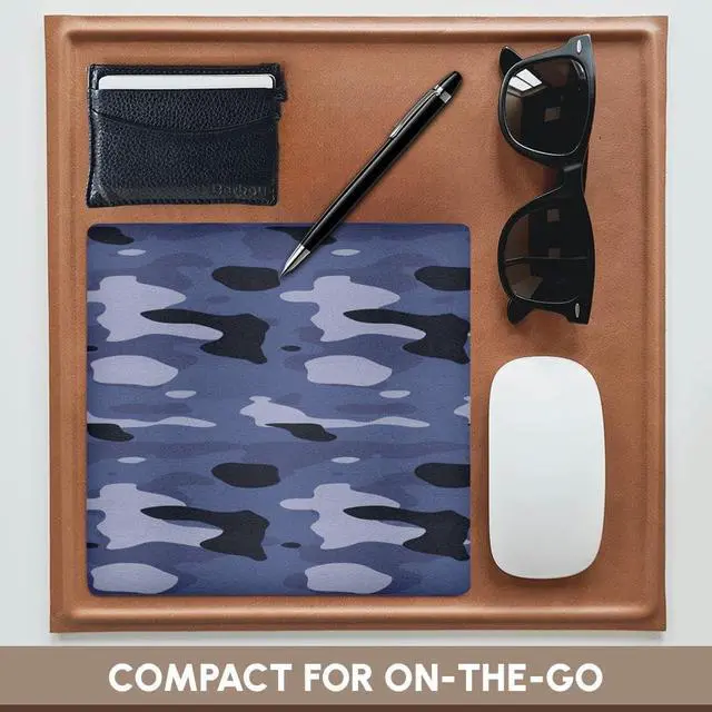 Navy Blue Camouflage- Military Fashion- Patriotic Mouse Pad is 8" x 8" x. 25" and is made of heavy-duty recycled rubber. Matte finish image will not fade or peel. Machine washable using a mild detergent and air dry.