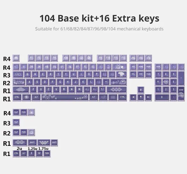 Textured finish for a premium look and feel. ^^ What You Get-120 keycaps set include 104 standard keys and 16 supplementary keys. Its only keycaps, no keyboard included