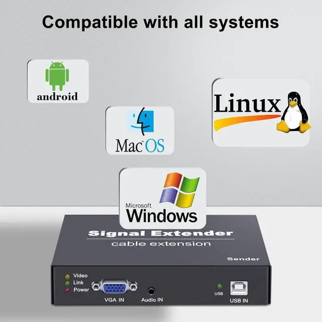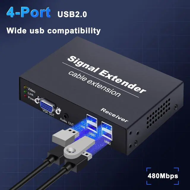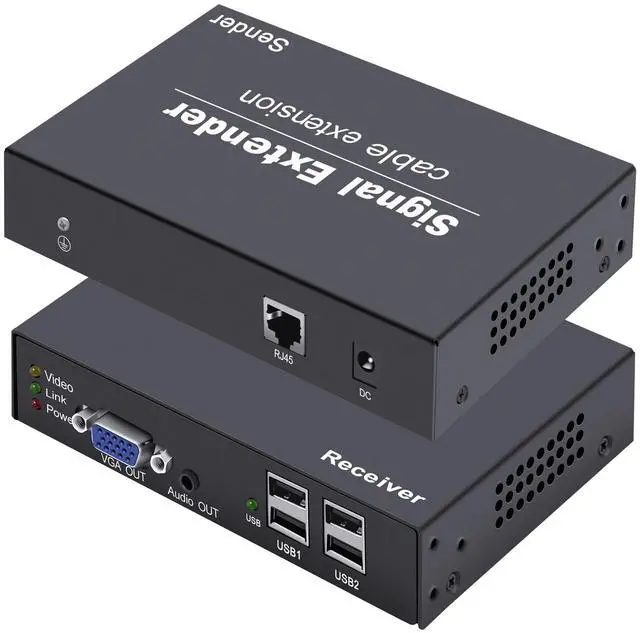 ZERO-LATENCY 1080P@60Hz VIDEO TRANSMISSION << Powered by a high-performance FPGA processor, this VGA KVM Extender delivers uncompressed, real-time 1080P@60Hz video over Cat5e/6/7 with zero perceptible lag for seamless monitoring ^^ 4 USB 2.0 FULL-SPEED PORTS << Integrated USB 2.0 hub lets you connect keyboards, mice, USB printers/scanners, or webcams simultaneouslyideal for KVM over Ethernet, remote control rooms, and office setups ^^ INDEPENDENT 3.5 MM AUDIO IN/OUT << Stereo audio input and output plus microphone return ensure crystal-clear sound for conferencing systems, remote teaching, and live commentaryperfect audio-video synchronization ^^ PLUG-AND-PLAY OVER CAT5E/6/7 UP TO 164 FT/50 M << No driver installation neededsimply use a single standard Ethernet cable to extend VGA, USB, and audio signals up to 50 m; fully compatible with Ethernet KVM switches and network cabling ^^ BROAD COMPATIBILITY & INDUSTRIAL-GRADE DESIGN << Works with Windows, macOS, Linux and supports VGA monitors, control rooms, medical imaging, and more.