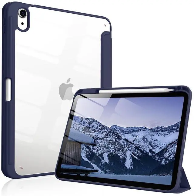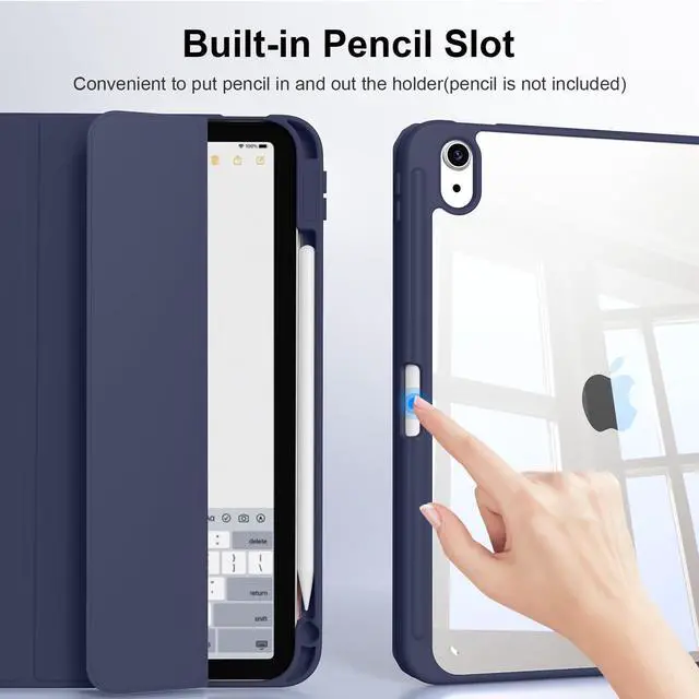 IAMKHO Case for iPad (A16) 11th Generation 11 Inch 2025, iPad 10th Generation Case 10.9 Inch 2022 with Pencil Holder, Shockproof Cover with Clear Back Shell, Supports Auto Wake/Sleep (Navy)
