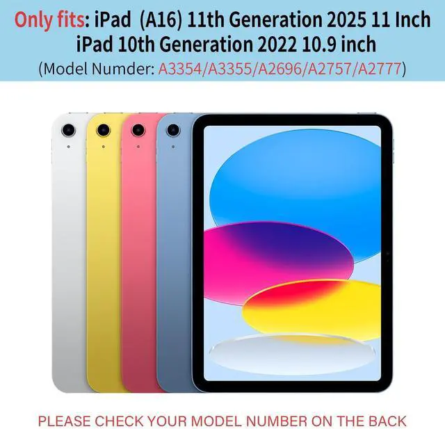 • [Compatibility]: Protective case for iPad (A16) 11th generation 11 inch 2025 (Model: A3354 A3355 A3356), iPad 10th generation 10.9 inch 2022 (Model: A2696 A2757 A2777 A3162). Please check back bottom of your iPad cover to find the model number.