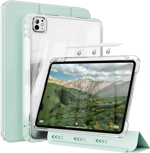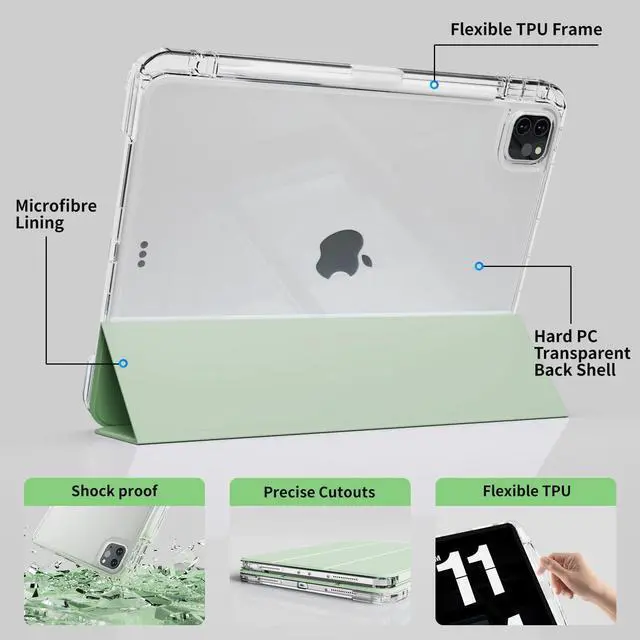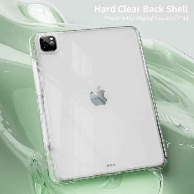 ^^ Full Protection: The transparent hard-shell back cover protects your iPad from shocks, drops, and impacts. The surface is soft and silky, providing a comfortable touch to the skin. You can clearly see the iPad logo through the back cover, while it showcases the original beauty of your iPad.
