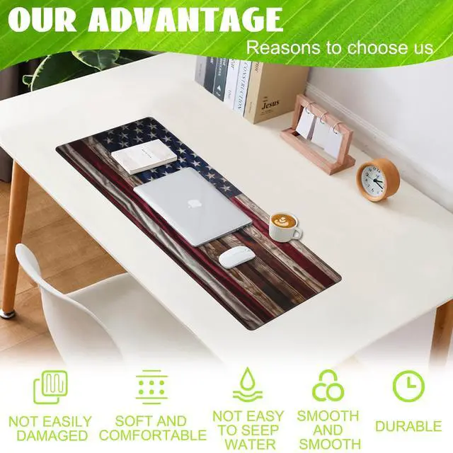 Eflxamz Large Gaming Mouse Pad for Desk,Wooden American Flag Desk Mat,Wooden USA Flag Desk Pad,Extended Big Computer Keyboard Mouse Pad with Non-Slip Base and Stitched Edge,31.5"x11.8"